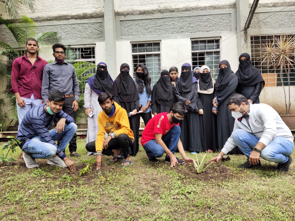Department of Botany organized an activity to set up college medicinal garden. This activity was conducted  with the help of T.Y.B.Sc Botany students in presence of Principal Dr. Aftab Anwar Shaikh. Students were provided with garden equipment to carry out the plantation process. Two students adopted single plant for plantation and further care. The objective was to make students identify medicinal plants correctly.